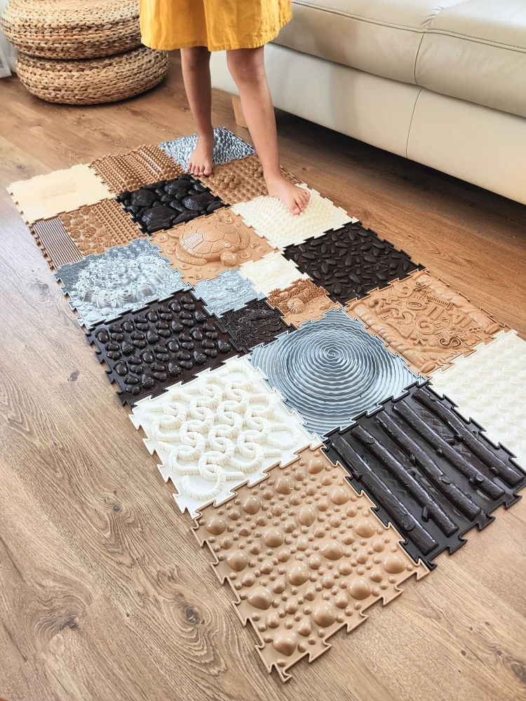 Walking on these mats immitates a walk on naturally uneven surfaces and helps to form a stable musculoskeletal system and good balancing skills.